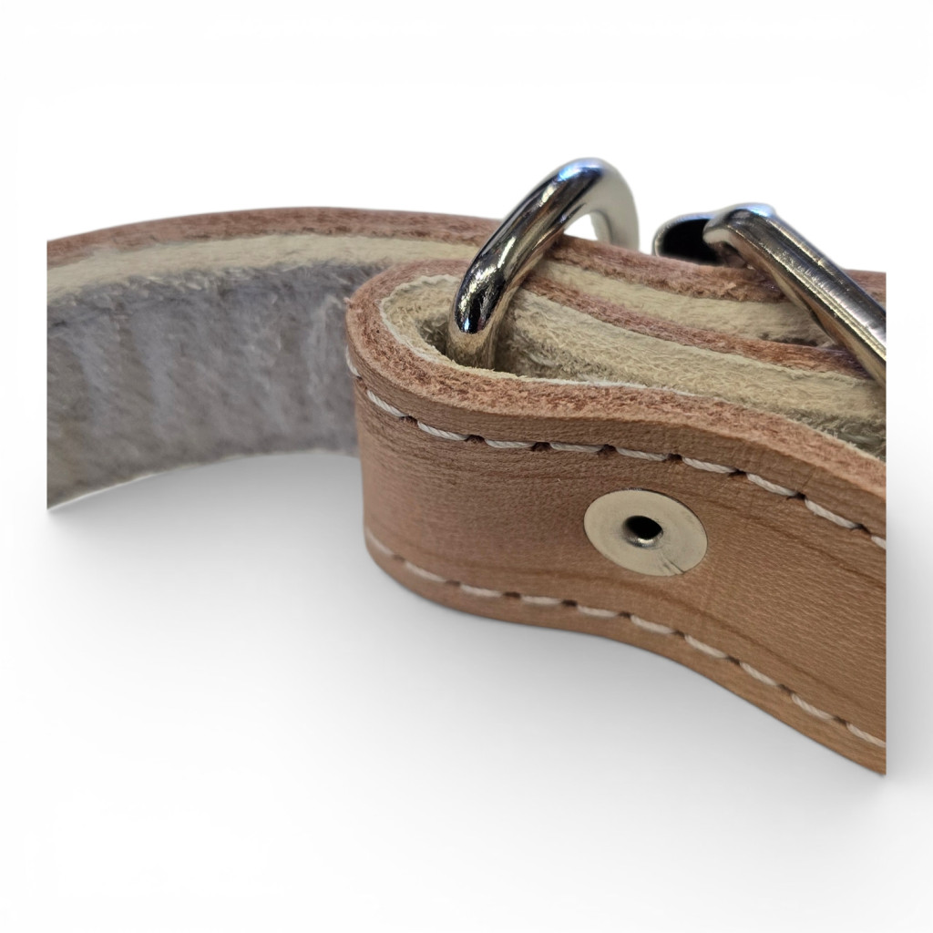 - Magas minőségű bőr: Tartós és puha anyag, amely nem dörzsöli vagy irritálja a kutya nyakát.
