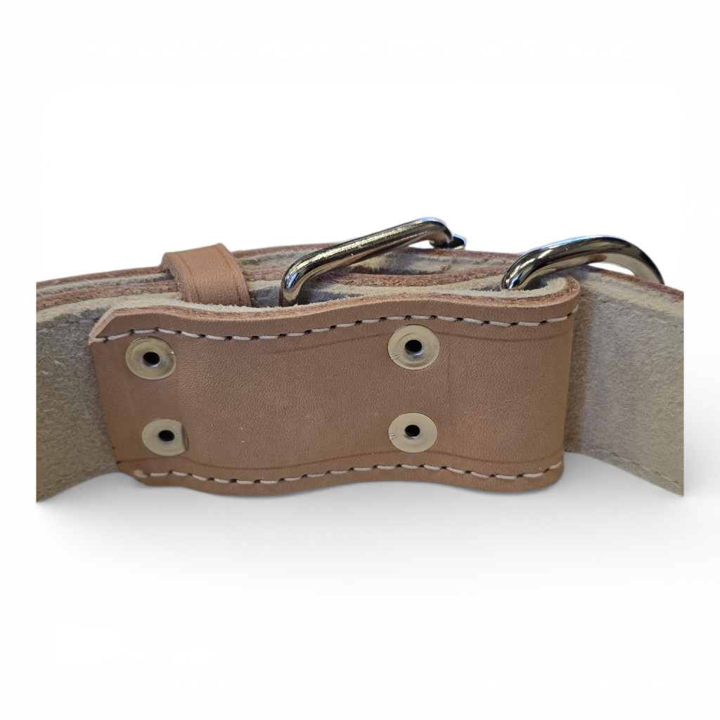 Ez a kiváló minőségű bőr nyakörv végkarikás kialakítással készült, amely biztosítja a maximális stabilitást és biztonságot sétáltatás vagy képzés közben.