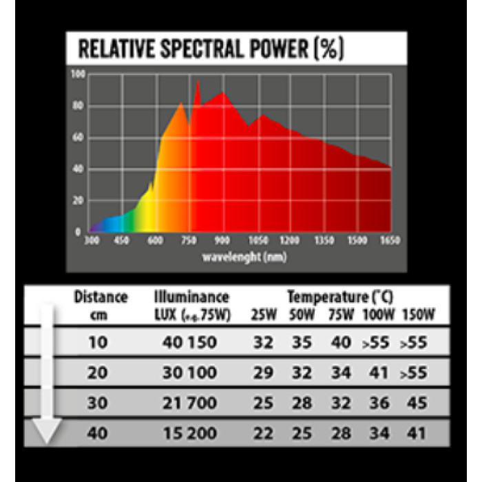 – 100 wattos teljesítmény a hatékony világításért és hősugárzásért