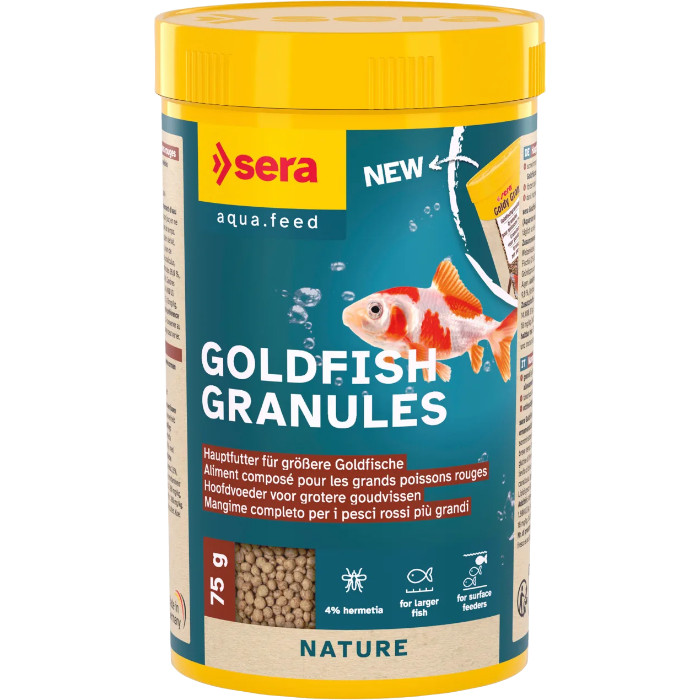 A Sera Goldy Gran Nature egy prémium minőségű, természetes összetevőkre épülő granulált eledel, amelyet kifejezetten nagyobb aranyhalak és más hidegvízi halfajok számára fejlesztettek ki. A sera Nature termékcsalád tagjaként nem tartalmaz mesterséges színezékeket vagy tartósítószereket, így természetközeli és kiegyensúlyozott táplálást biztosít egész évben.