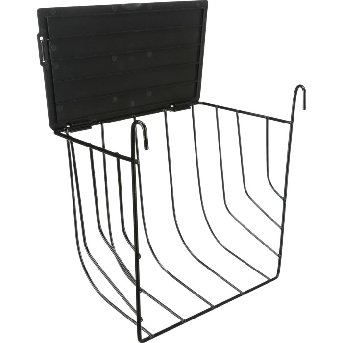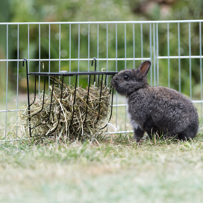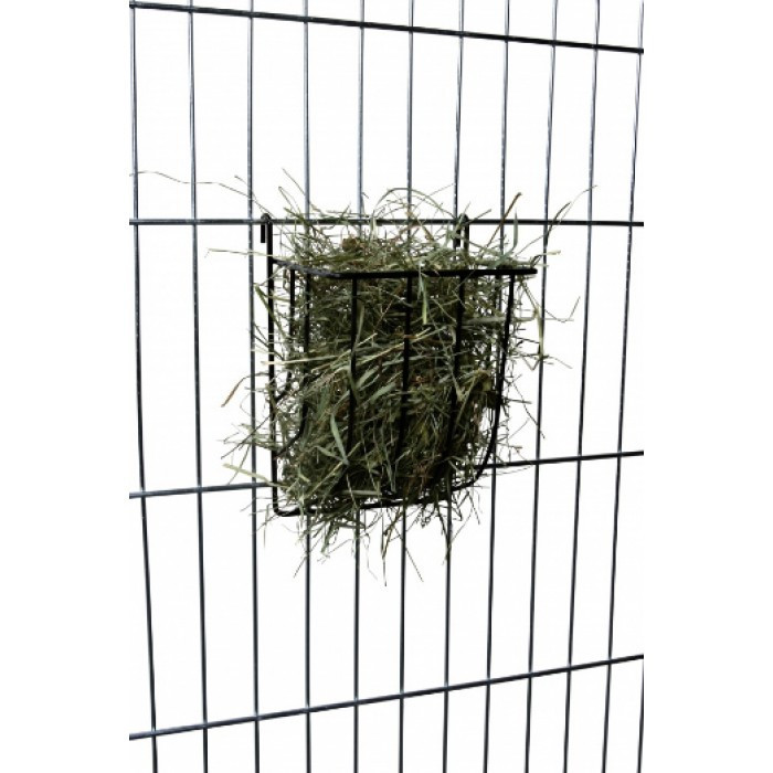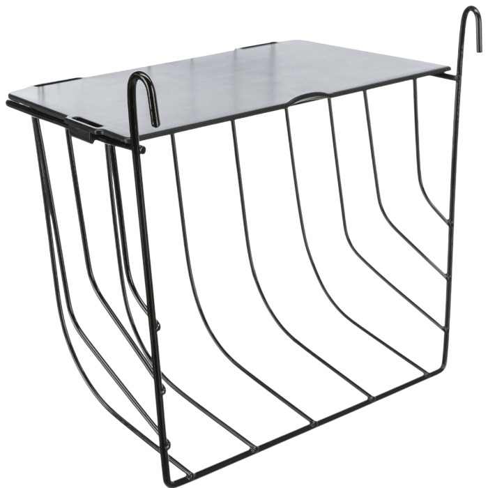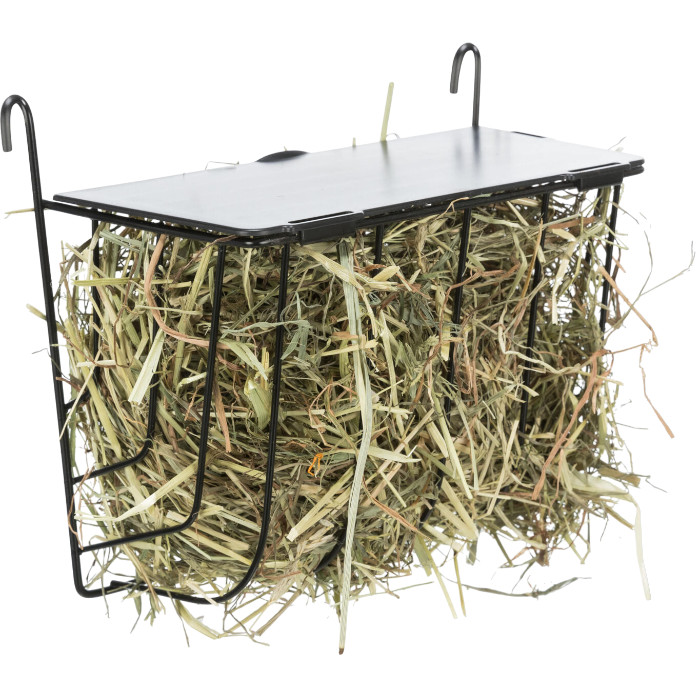 Ez a praktikus szénatartó lehetővé teszi, hogy a fű és széna ne kerüljön a padlóra, így tisztább környezetet biztosít.