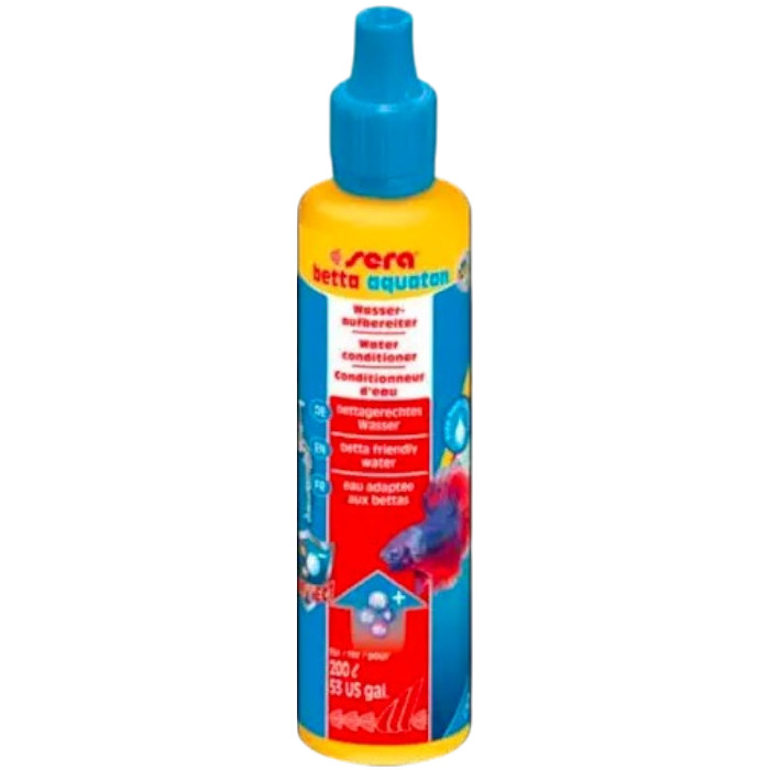 A Sera Betta Aquatan 50 ml kifejezetten a betták és más labirintushalak igényeihez igazított vízkondicionáló, amely azonnal
